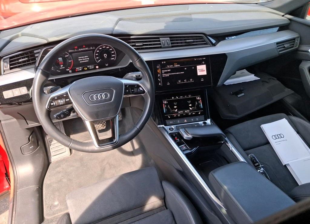 Wir bieten Ihnen einen Audi e-tron 55 advanced quattro in der Farbkombination Catalunyarot metallic/ Microfaser Dinamica/Leder-Kombination mit S Prägung, original 45.418 km, uvNP: 102.429€ mit folgenden Sonderausstattungen: