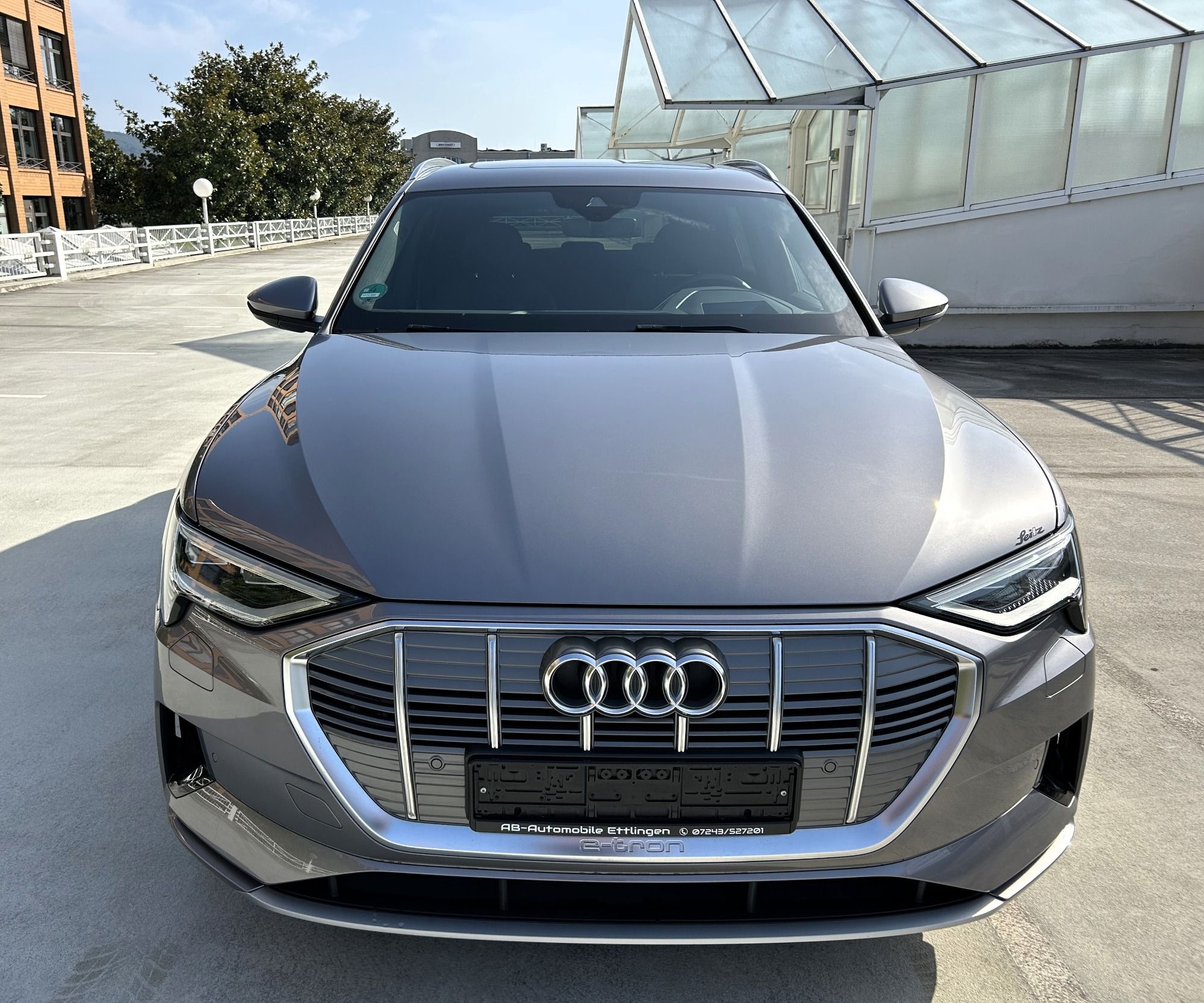 - Bremssättel orange lackiert mit e-tron-Schriftzug